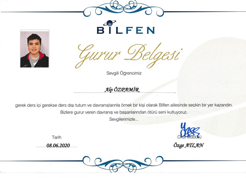 6. sınıfta Mart ayında Gurur Belgesi aldım ama sonra uzaktan eğitime geçince ödül kartı uygulaması olmadı ve onur belgesi ile tamamlayamadım.