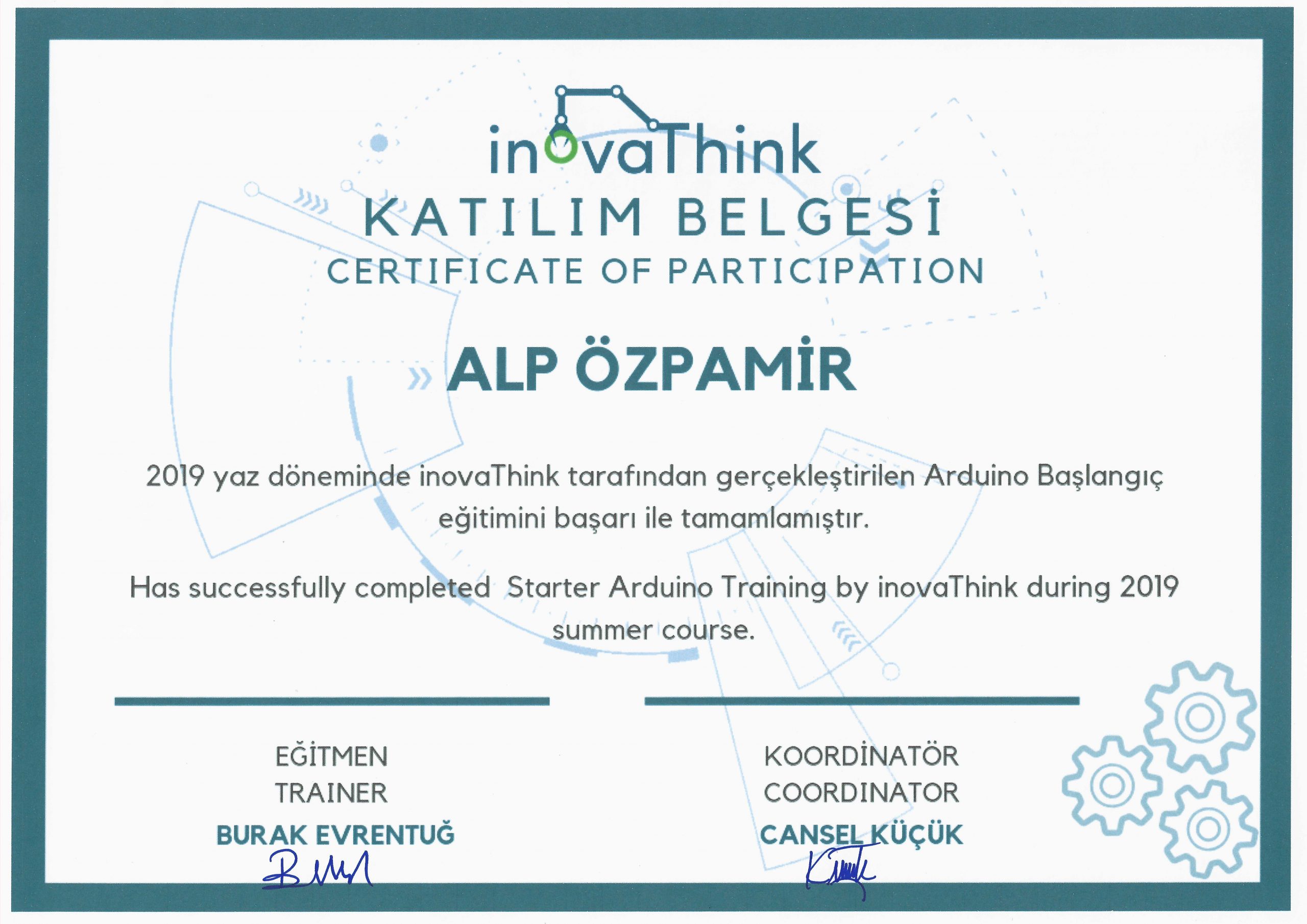 5. sınıfı bitirdikten sonra yaz tatilinde Haziran ayında hızlandırılmış Arduino başlangıç eğitimine katıldım. Haftada 3 gün olmak üzere 12 dersi tamamladım.