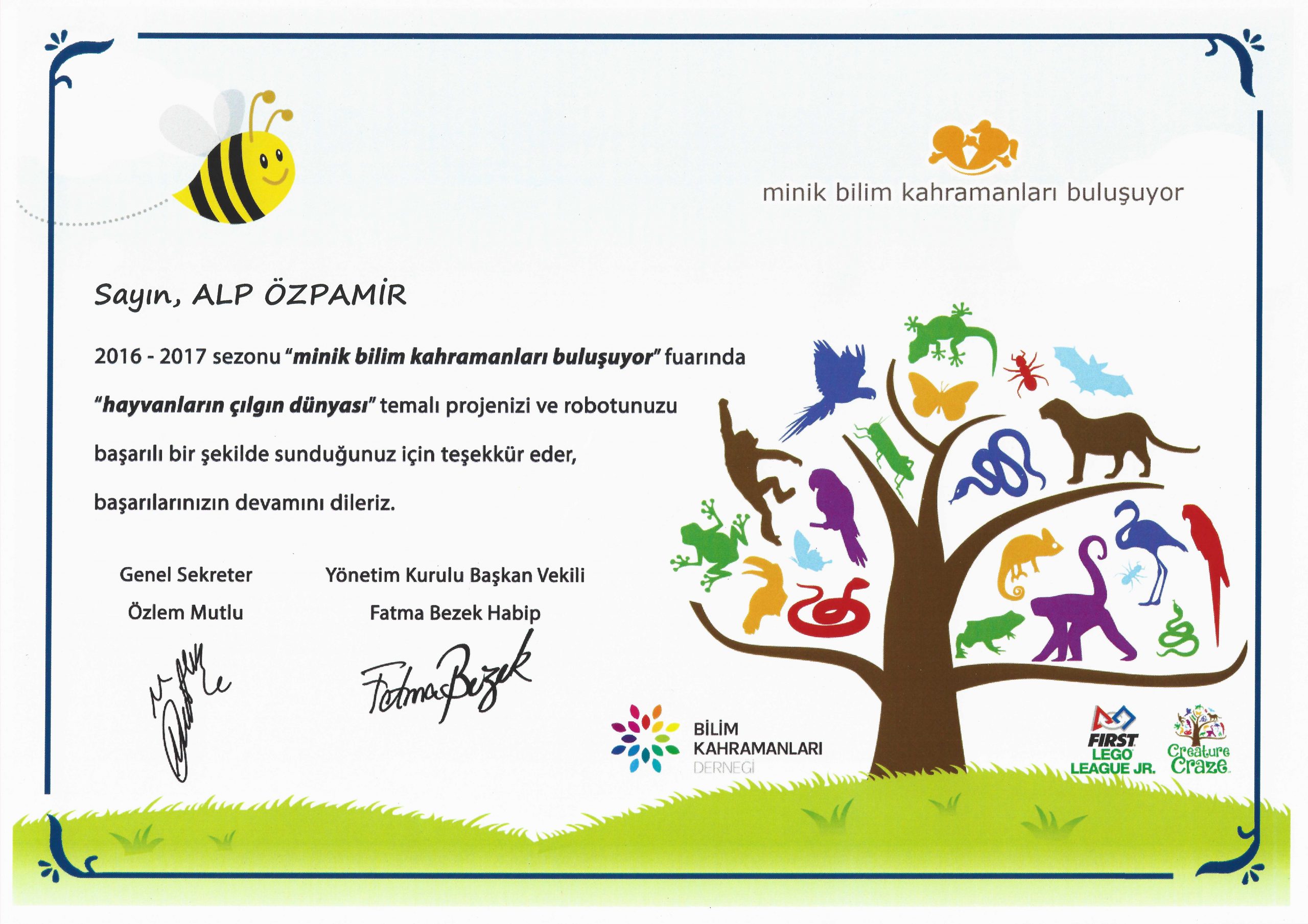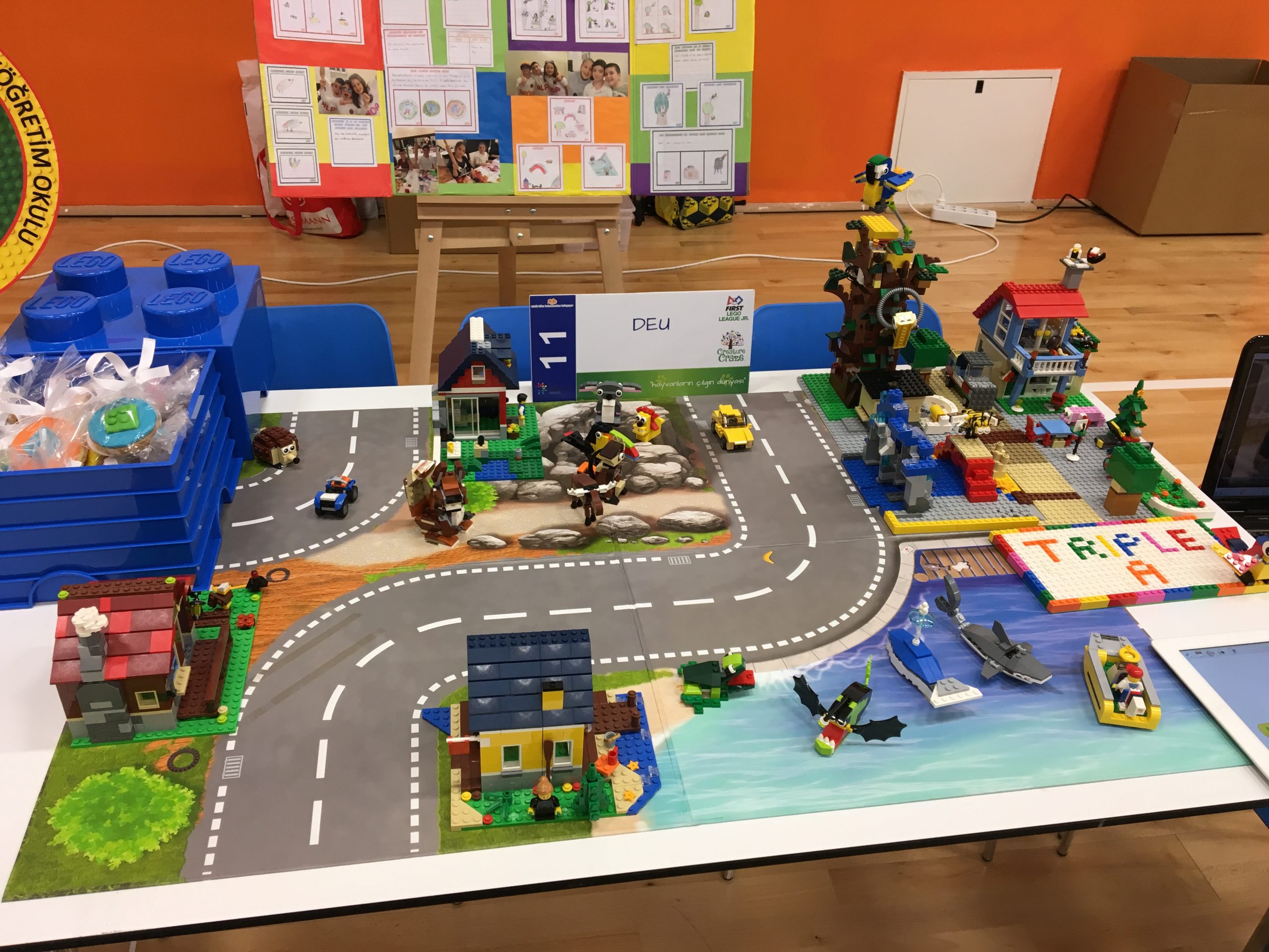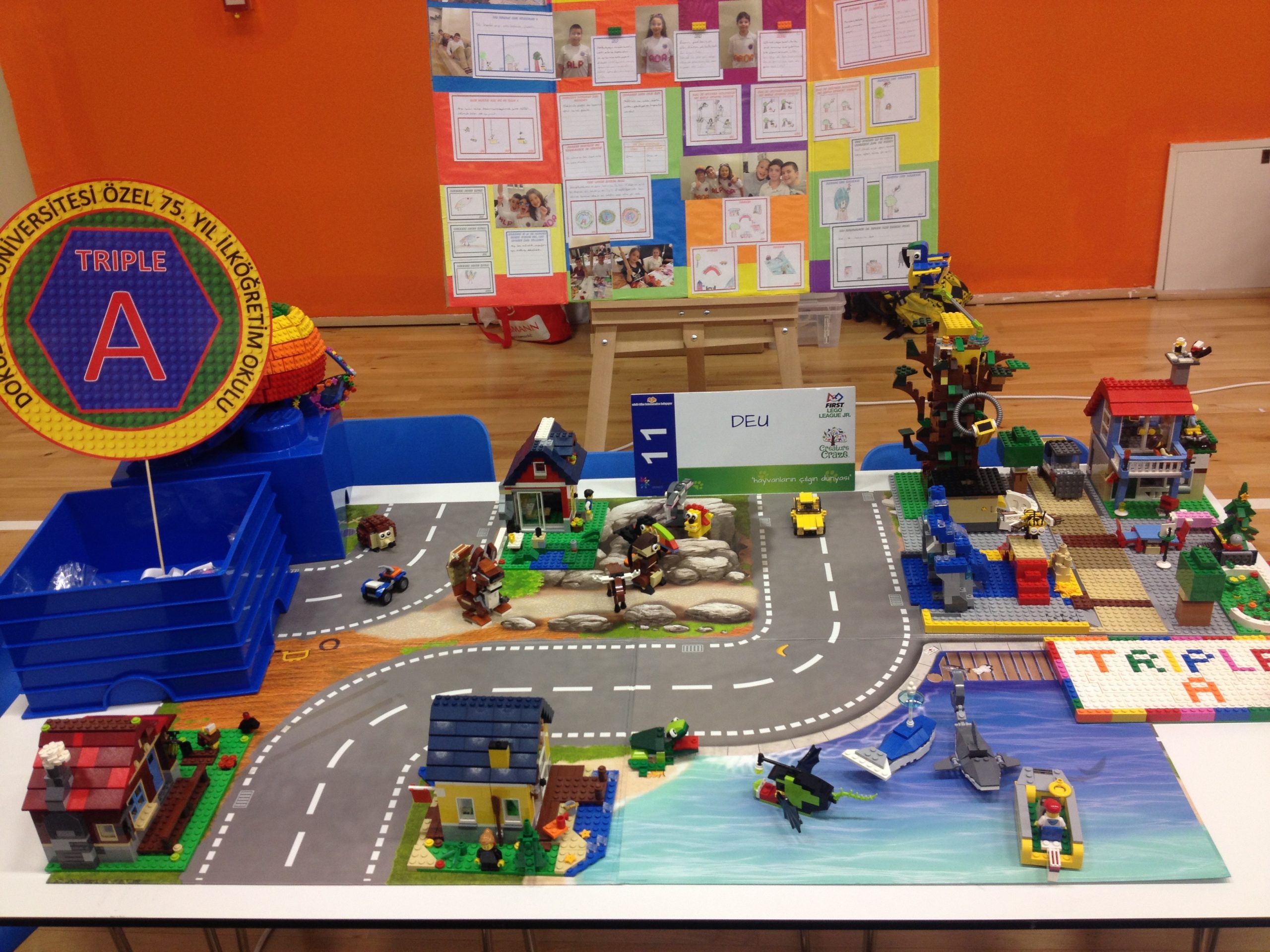 First Lego League Jr 2017’nin teması “Creature Craze” yani hayvanların çılgın dünyasıydı. Takımımızın adı Triple A, üçümüzün de adının ilk harfi A olduğu içindi. Sihirli Ellerin Tasarımı ödülünü almıştık.