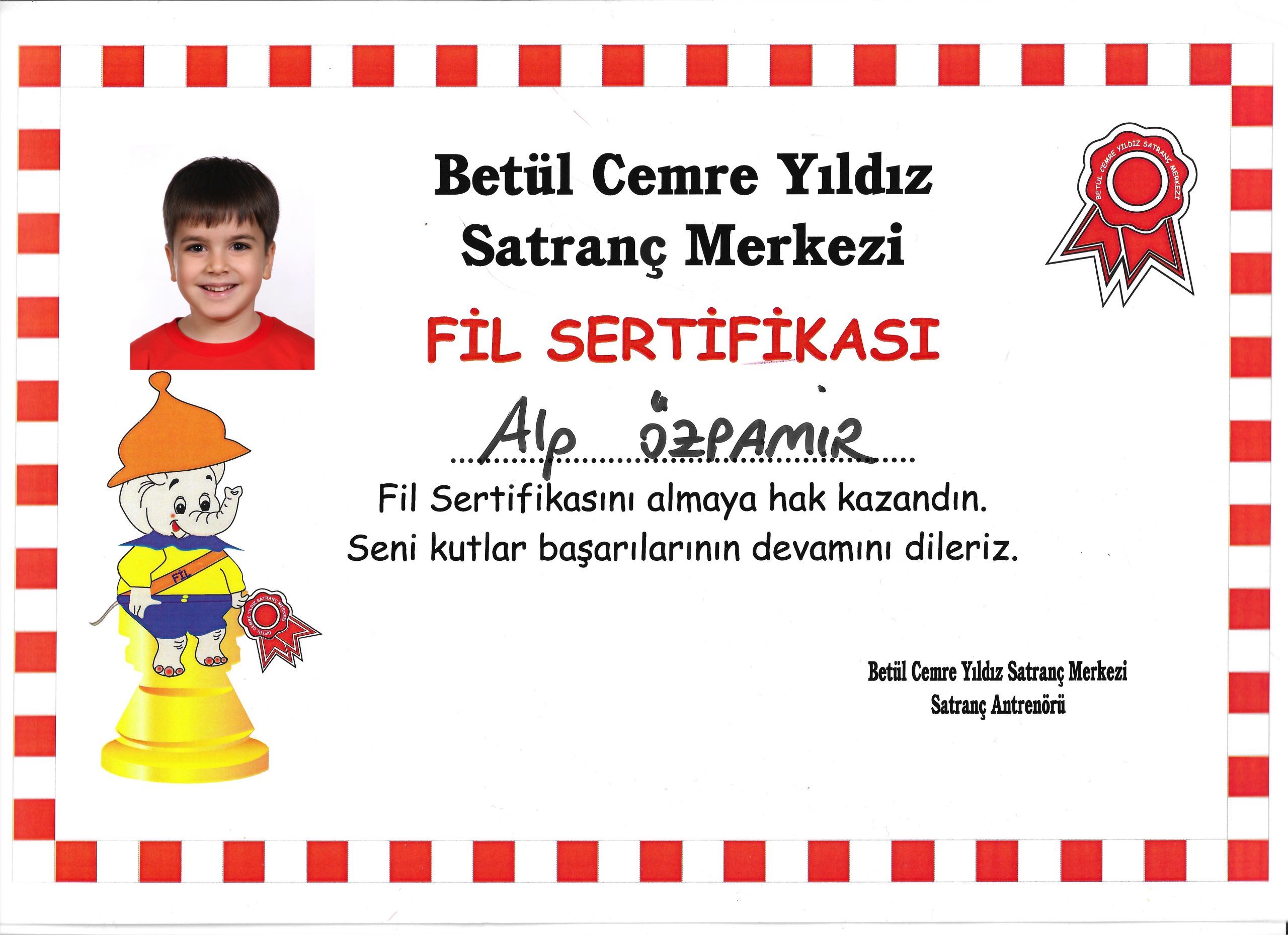 Satranç Kursu / Fil Sertifikası (Betül Cemre Yıldız Satranç Merkezi, Haziran 2015)