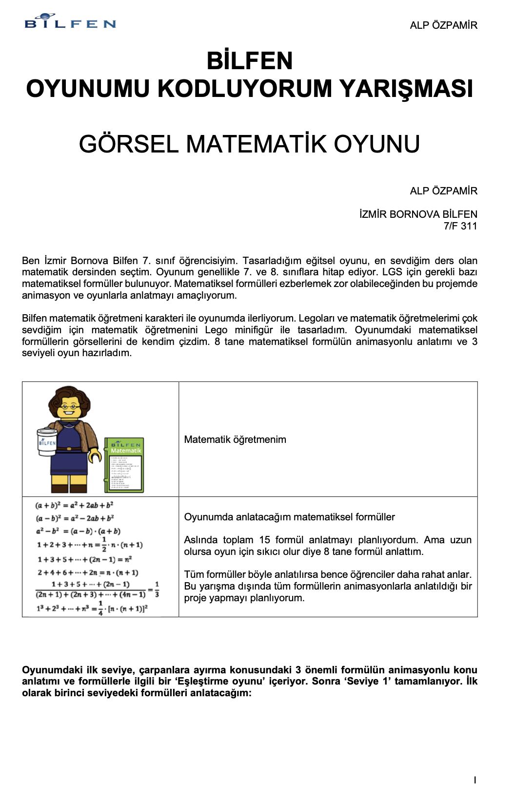 Matematik formüllerini görselleştirerek eğlenerek öğretmeyi amaçladığım oyunumla “Oyunumu Kodluyorum” yarışmasında “En İyi Tasarım Ödülü”nü aldım. ——————————————————————-
