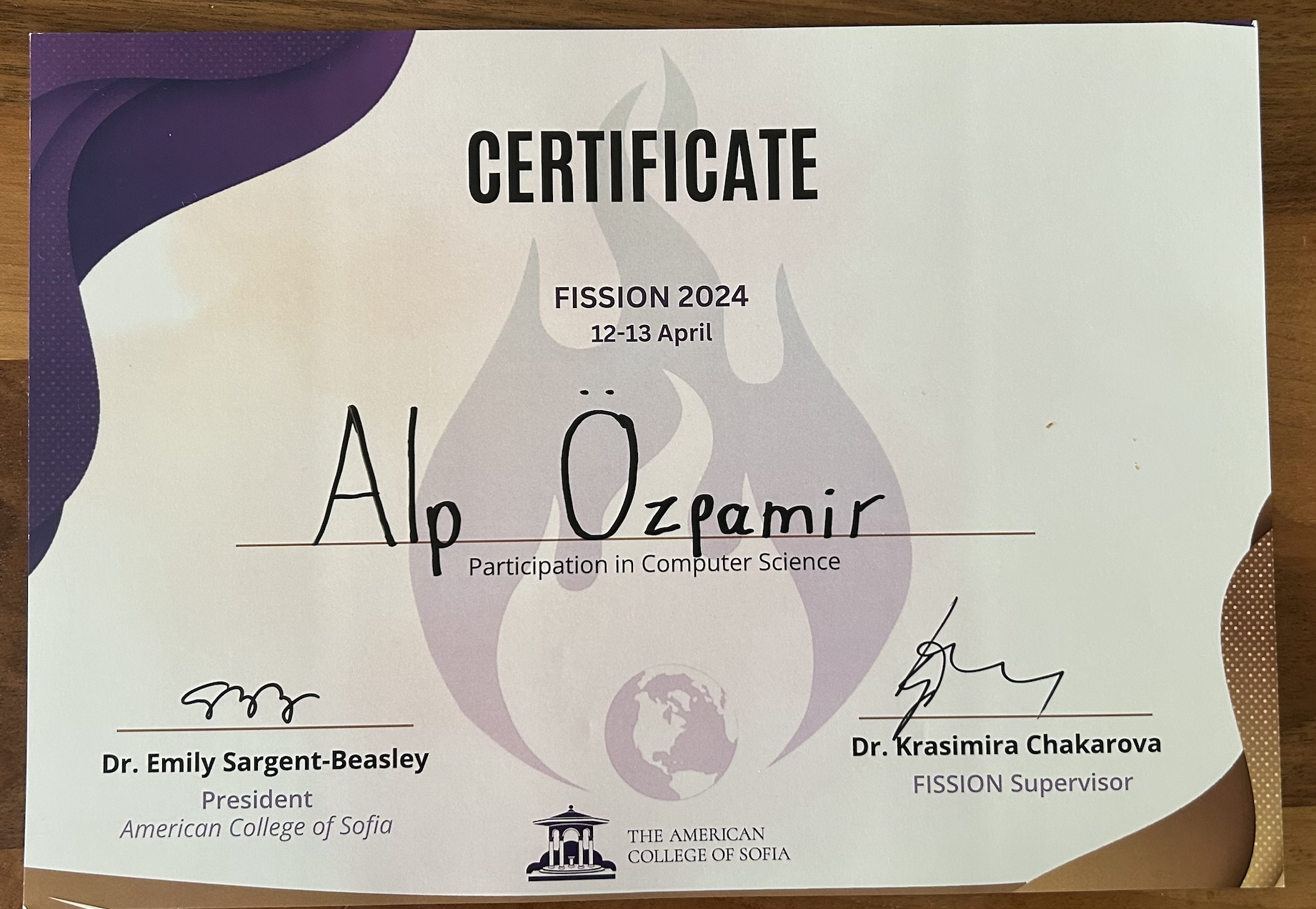 Sofya’da uluslararası düzeyde gerçekleşen bilim şenliğinde “Computer Science” alanında birincilik ödülü aldım.