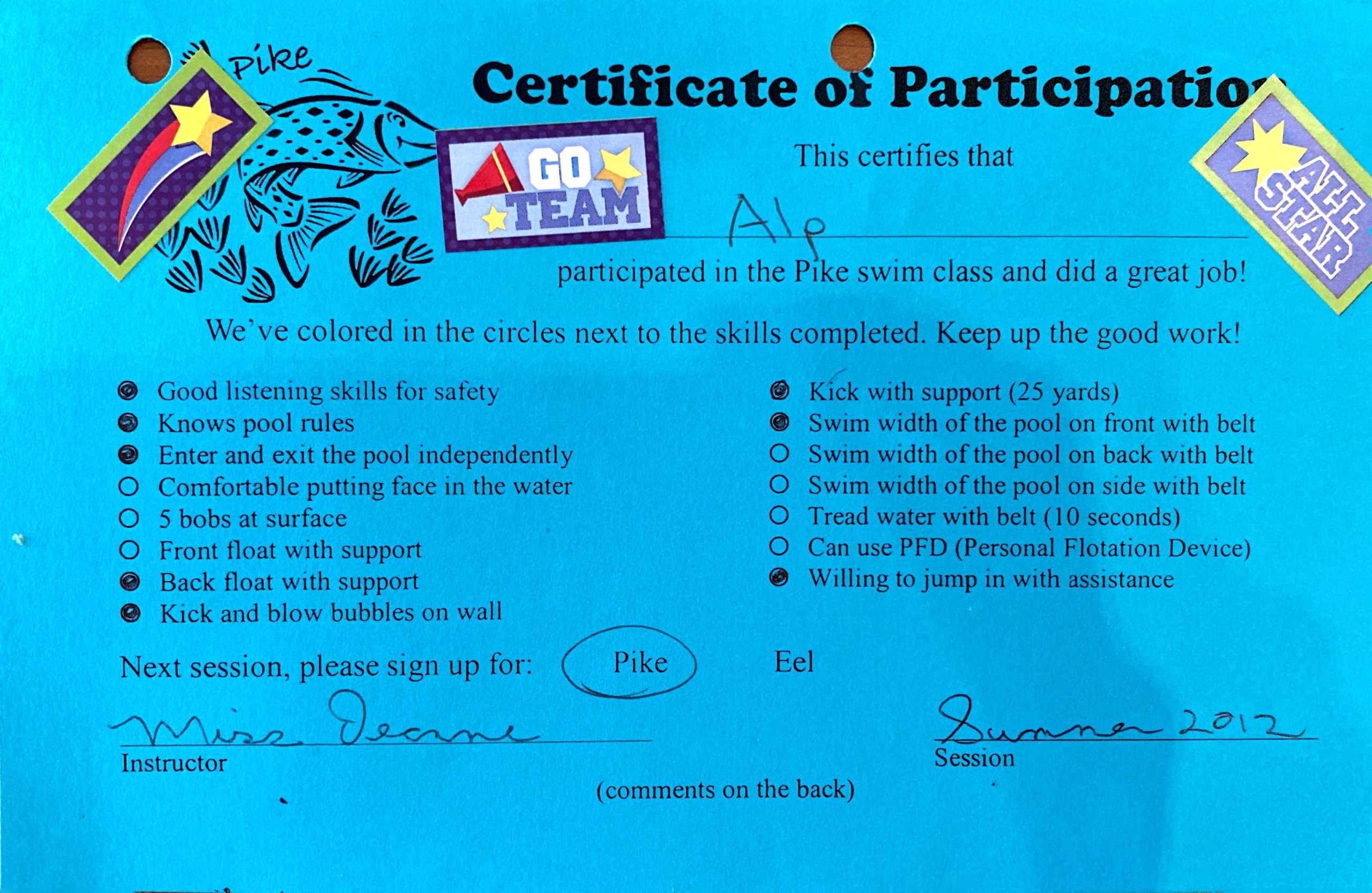 Yüzme Kursu (Evanston, IL, Haziran 2012 - Ağustos 2012)